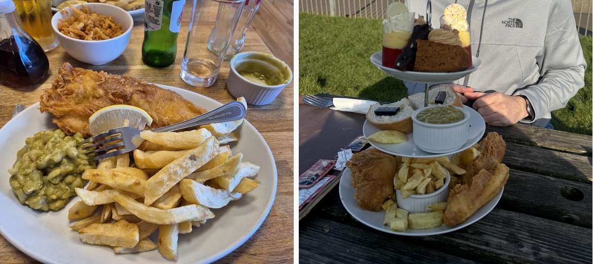 We had half lot fish n chips with B&B and tea. Freshly cooked. Waitress service. Good atmosphere. Very quick. Sensible prices