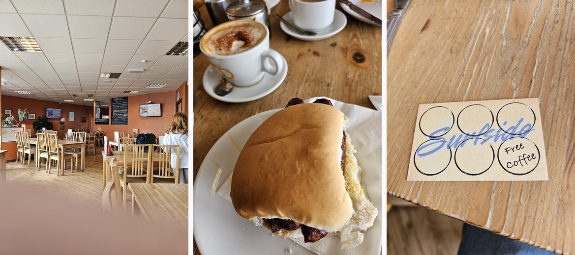 What a hidden gem! Perfect for a post walk cup of coffee and a tea cake ;) You can park right outside which is a huge plus and if the weather is fine you can sit outside right by the ocean. Does it get any better?! Also you get some pretty cute visitors to your table who may not be welcomed by all but are huge plus in my eyes.